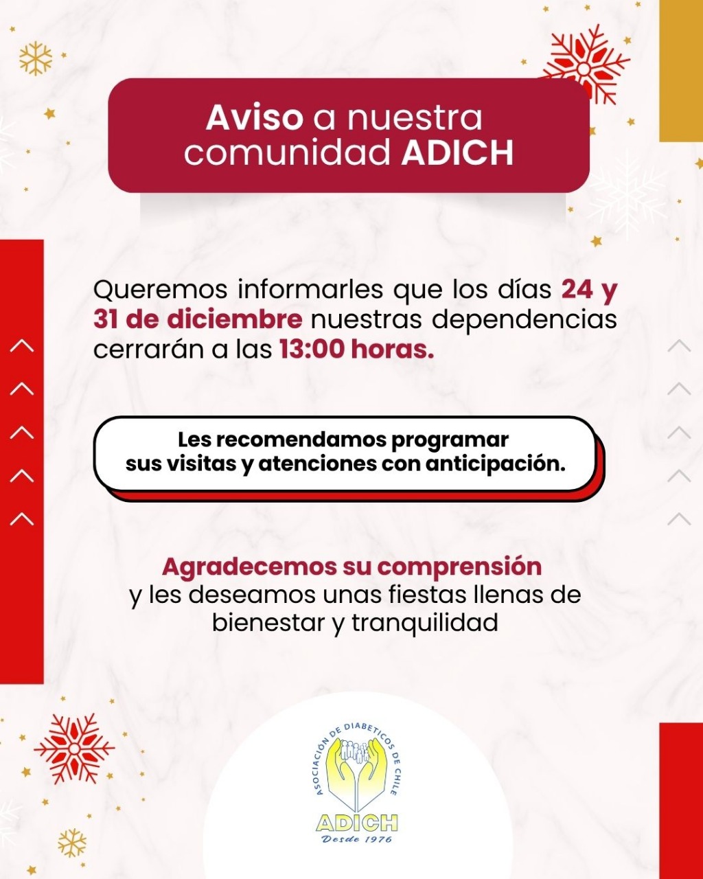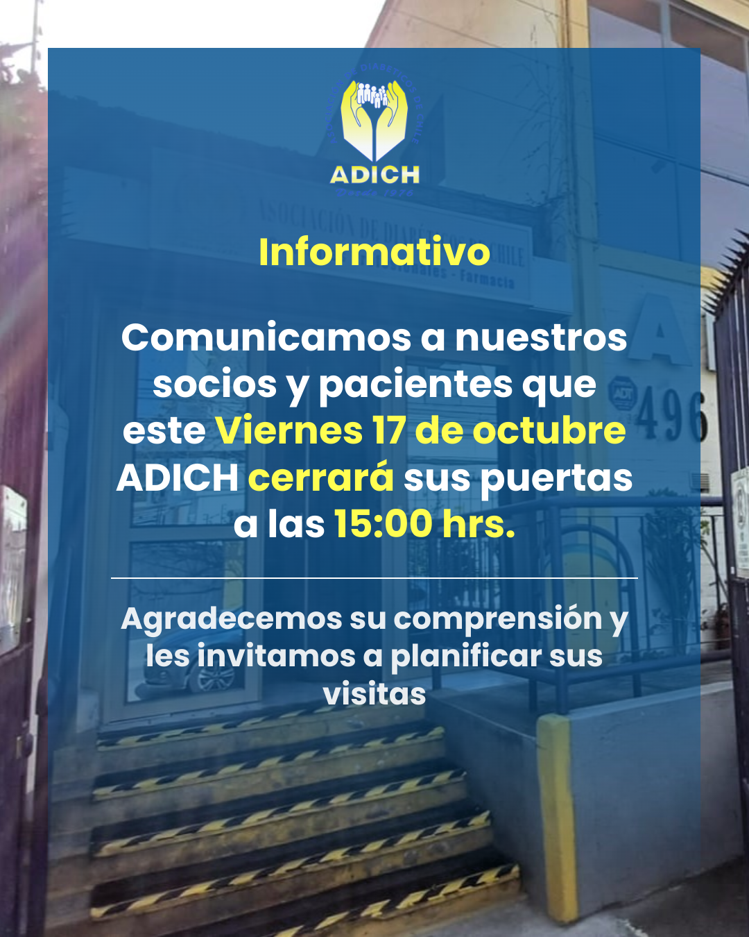 La Asociación de Diabéticos de Chile es una institución de asistencia social, sin fines de lucro, fundada el año 1976. Compuesta por un voluntariado, personal administrativo y profesionales de la salud altamente capacitados para brindar la mejor educación y atención al paciente diabético y su grupo familiar.